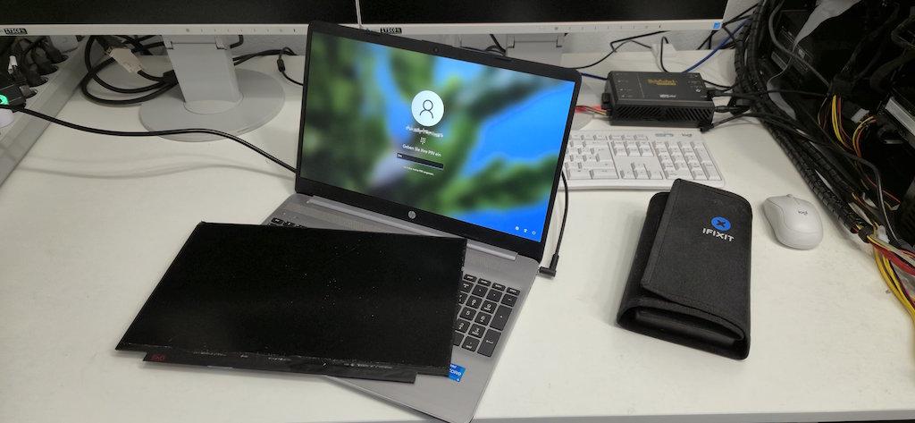Ein HP 250 G8 Laptop ist vom Tisch gefallen und dadurch das Display beschädigt worden. Das Display ist gebrochen und hat nichts mehr angezeigt.