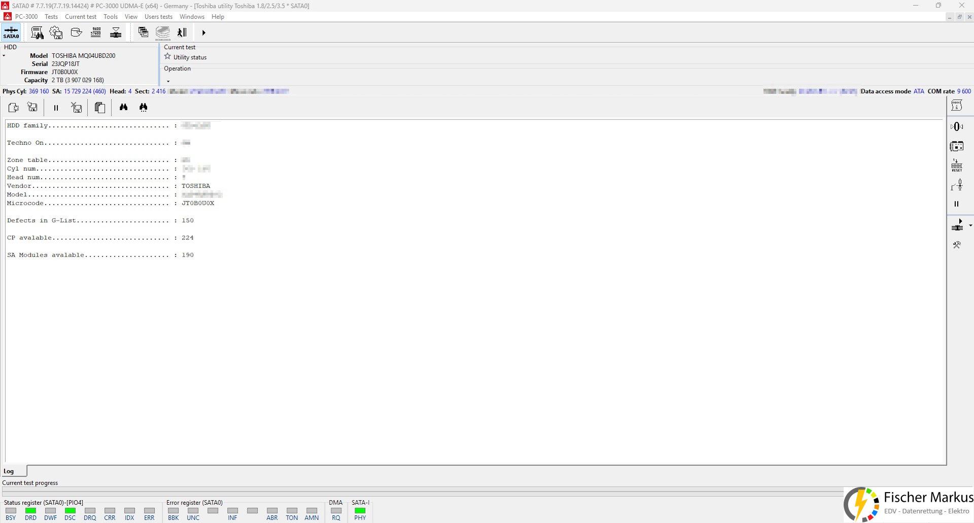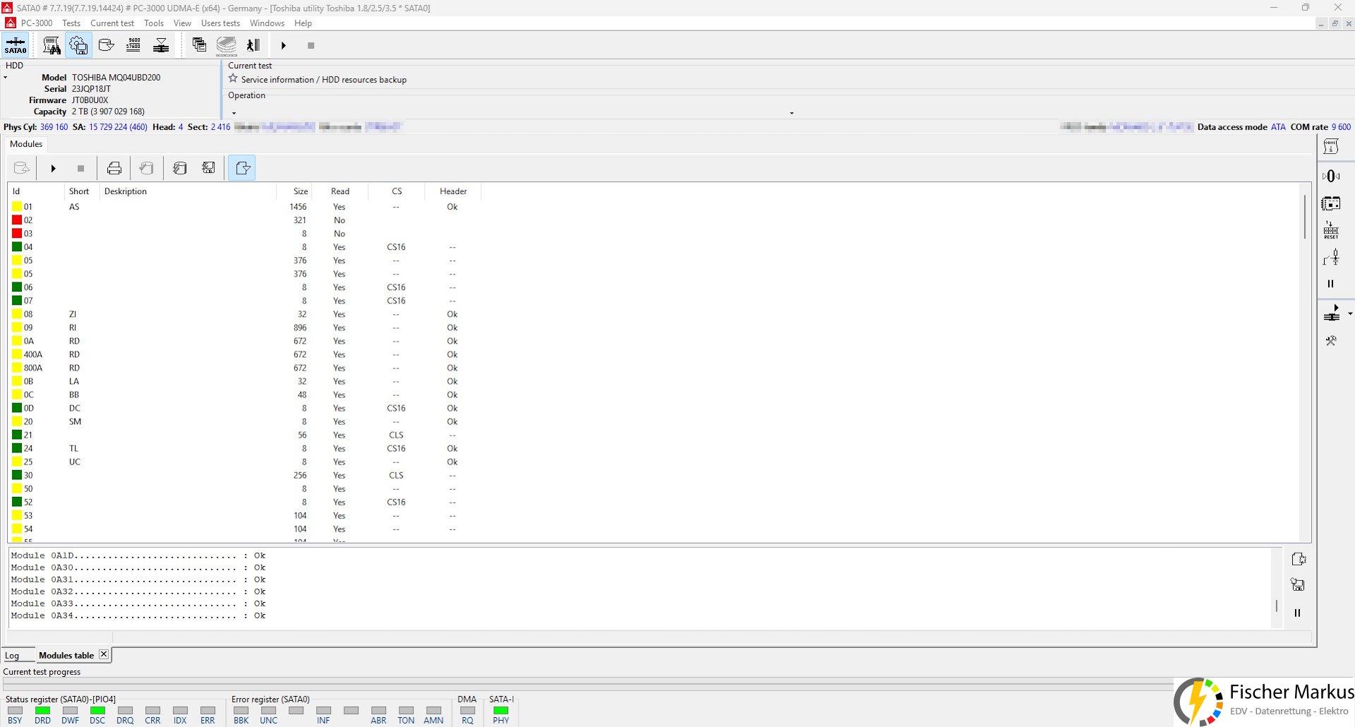 Im nächsten Schritt wurden dann wichtige Festplatteninformationen ausgelesen und gesichert.
