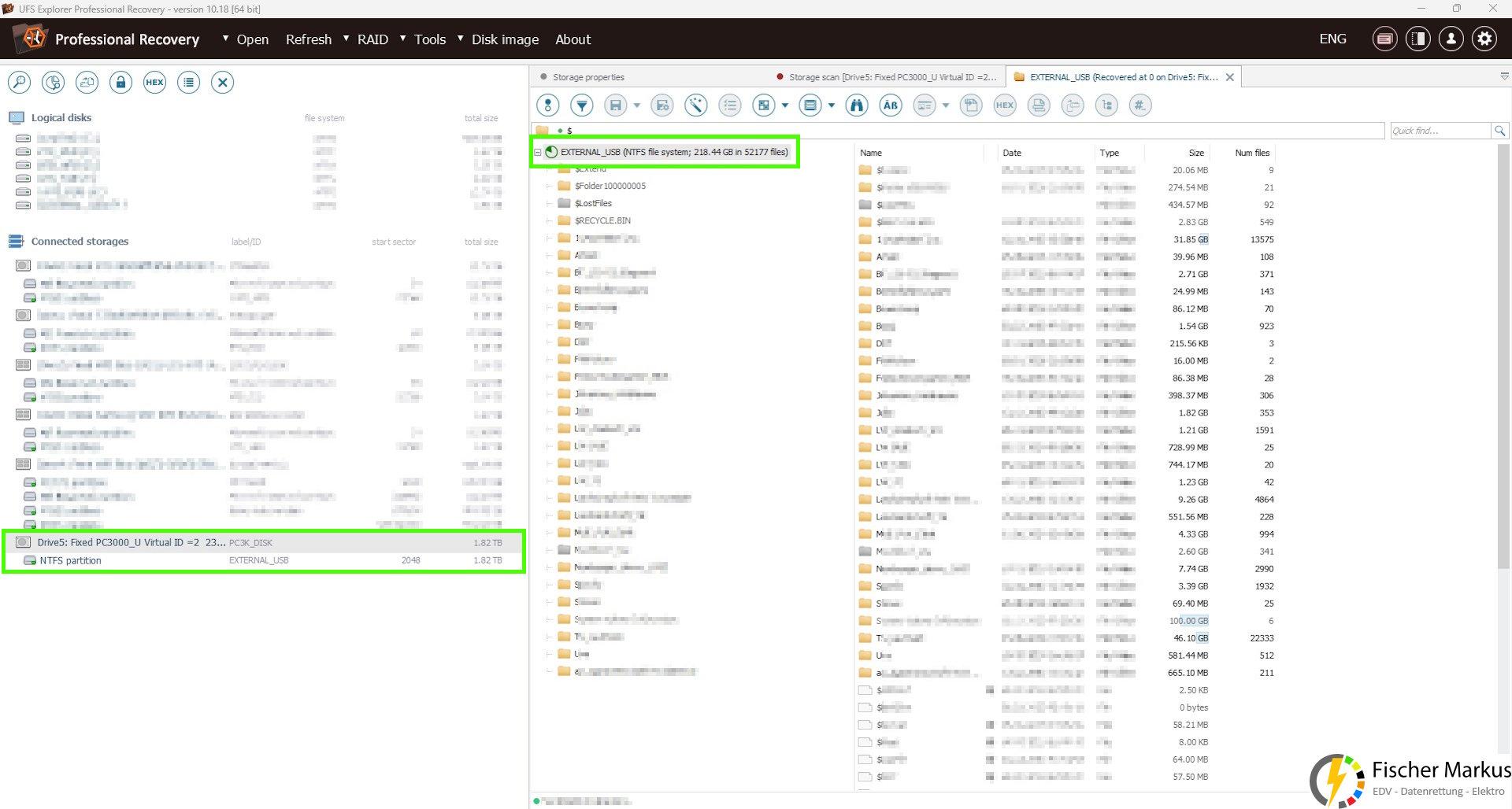 In Summe waren ca. 118Gb belegt, von denen bis auf ca. 17,7Gb alle erfolgreich ausgelesen werden konnte. Allerdings waren durch die fehlenden Sektoren auch Daten beschädigt.