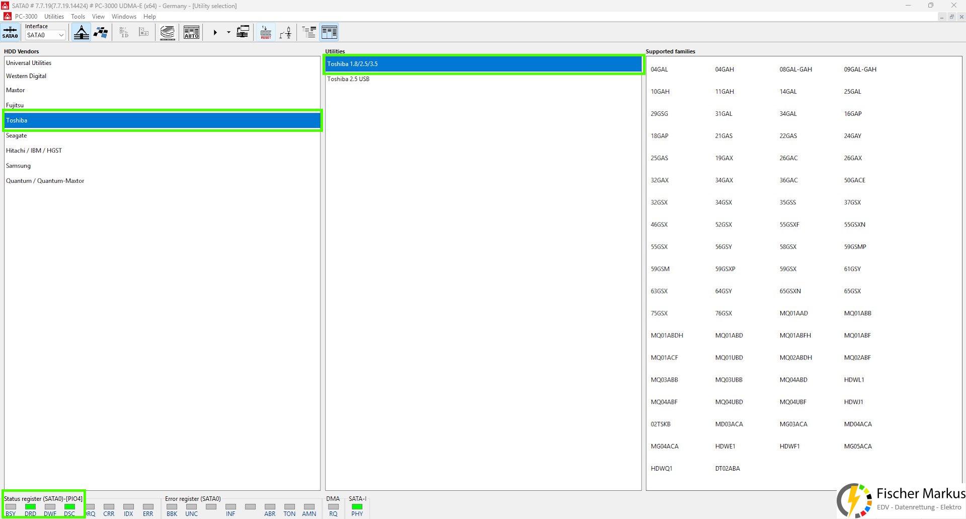 Bei Toshiba Festplatten ist dies ein sehr wichtiger Vorgang, da in dem ROM Speicher existenziell wichtige Informationen enthalten sind, ohne die ein Datenzugriff nicht mehr möglich ist.