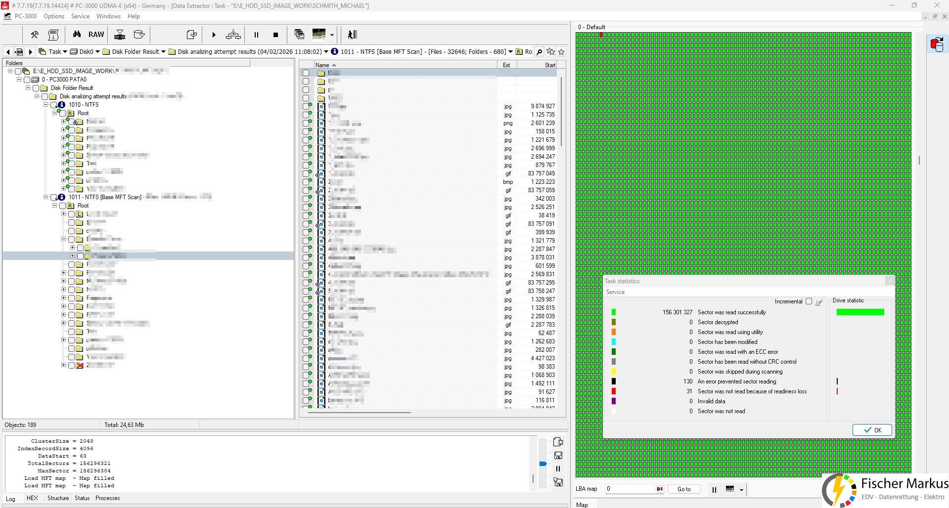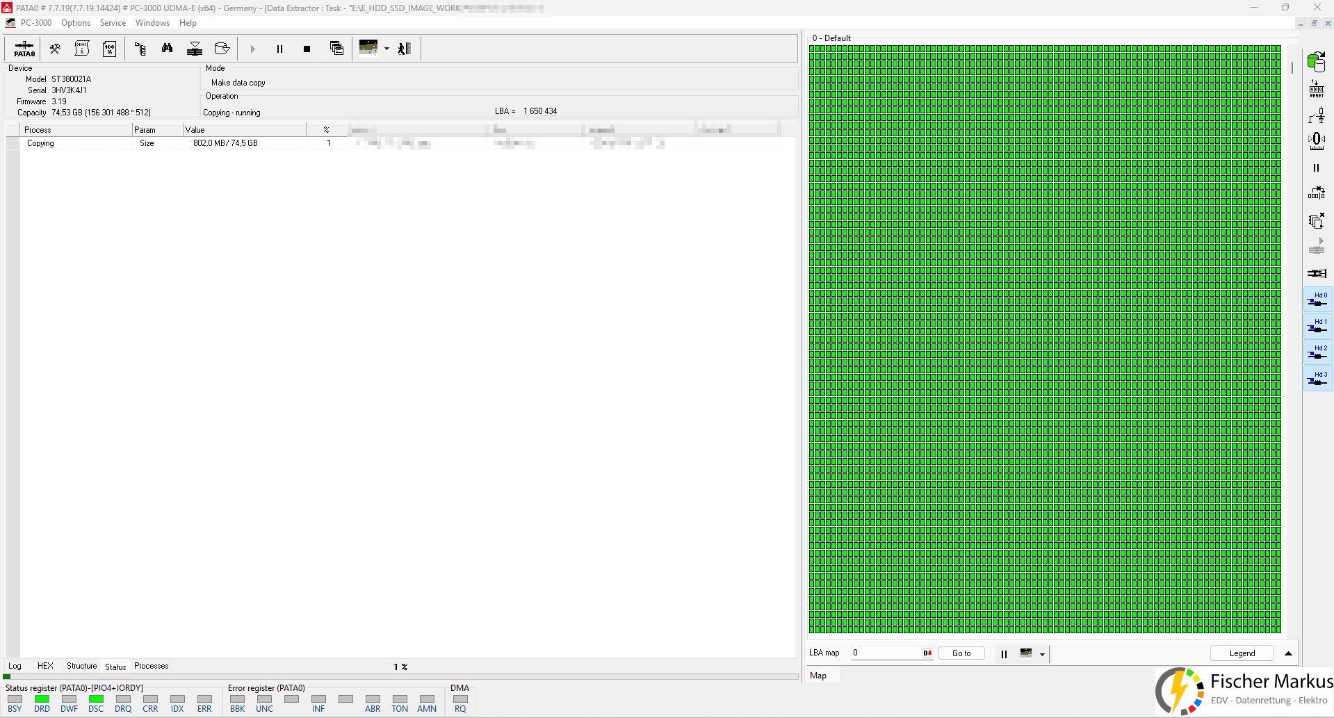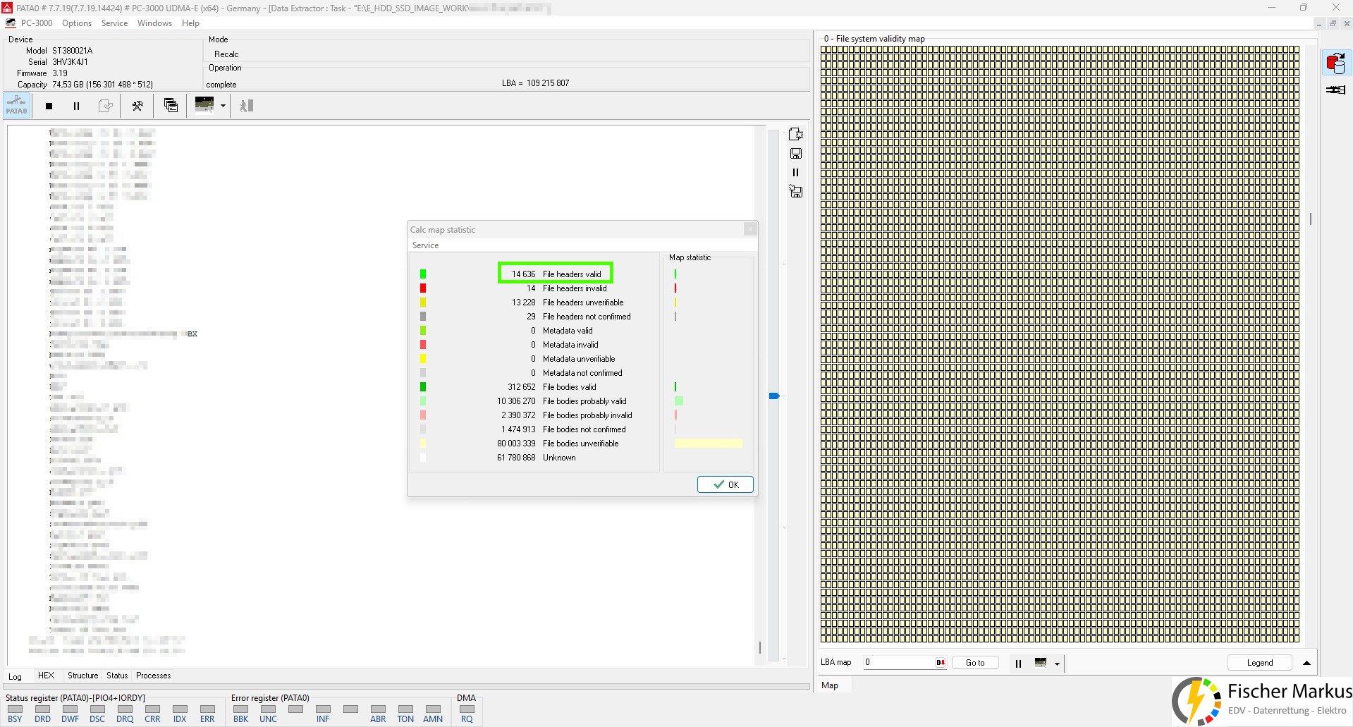 Mittels Spezialhard-/ und Software vom Marktführer ACELab (PC-3000 UDMA System) erfolgte die weitere Bearbeitung und Datenrettung.