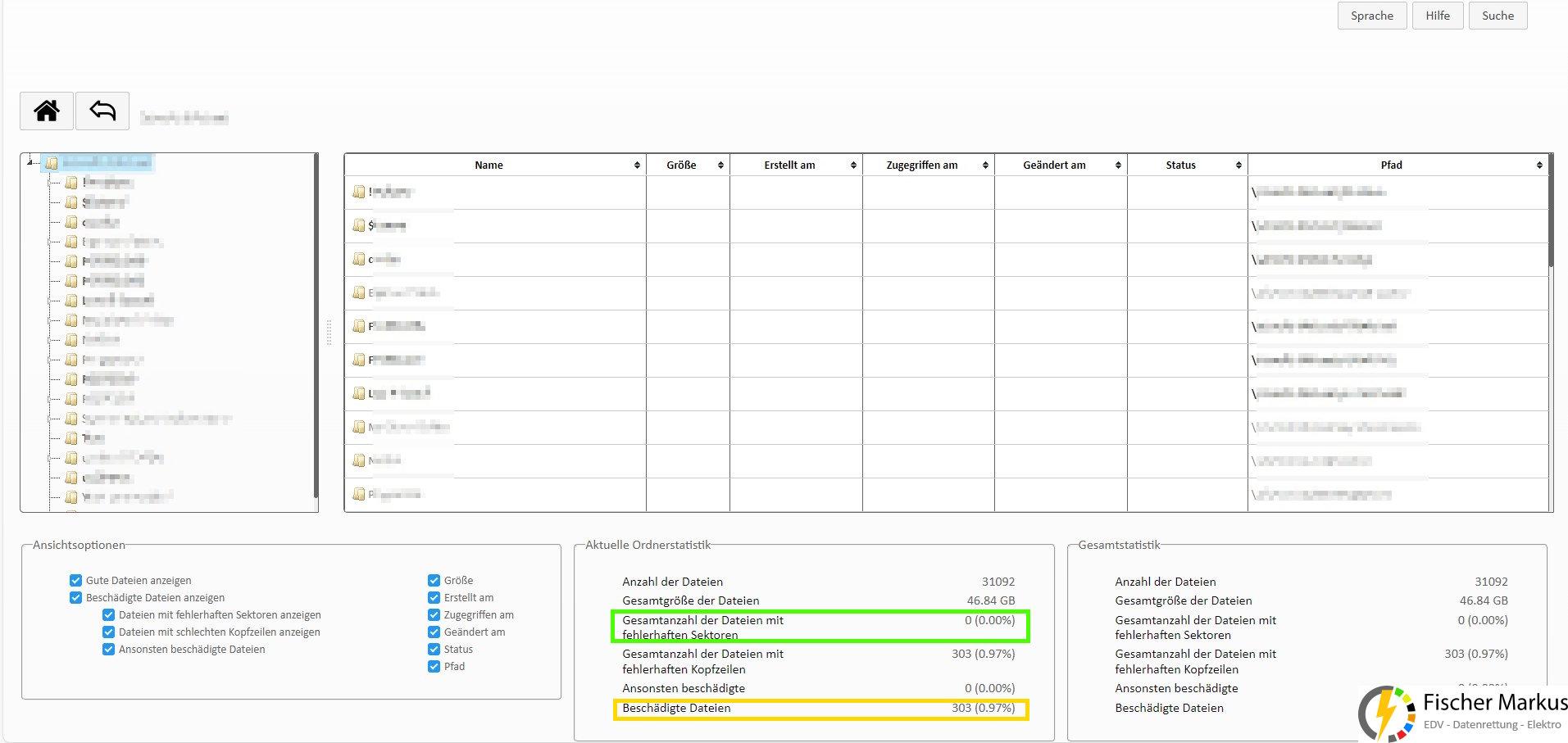 Es wurde eine sog. „Map of used sectors“ erstellt, um festzustellen wie viele Sektoren tatsächlich mit Nutzerdaten belegt sind und welche Daten welchem Schreib-/Lesekopf zugeordnet sind.